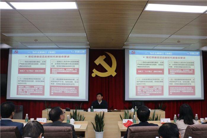 三峽集團(tuán)紀(jì)檢監(jiān)察部及地區(qū)紀(jì)委各專(zhuān)家深入課堂,進(jìn)行現(xiàn)場(chǎng)授課, 三峽集團(tuán)紀(jì)檢監(jiān)察部以《學(xué)習(xí)貫徹 <紀(jì)律處分條例> ,推進(jìn)全面從嚴(yán)治黨向縱深發(fā)展》為題,為大家講解了新修訂的《紀(jì)律處分條例》,對(duì)一些關(guān)鍵點(diǎn)結(jié)合具體案例進(jìn)行了剖析,參訓(xùn)學(xué)員受益匪淺。會(huì)議還分別就《堅(jiān)持深化政治巡視巡察,努力推進(jìn)全面從嚴(yán)治黨向縱深發(fā)展》《中華人民共和國(guó)監(jiān)察法》《學(xué)好用好初核制度,確保初步核查工作質(zhì)量》《關(guān)于紀(jì)檢監(jiān)察信息報(bào)送工作的內(nèi)容與要求》《集團(tuán)公司違紀(jì)違規(guī)員工懲戒辦法》等執(zhí)紀(jì)審查相關(guān)工作實(shí)務(wù)作專(zhuān)題培訓(xùn),會(huì)后參訓(xùn)學(xué)員分組討論,交流心得體會(huì)和學(xué)習(xí)成果。 紀(jì)律處分條例>