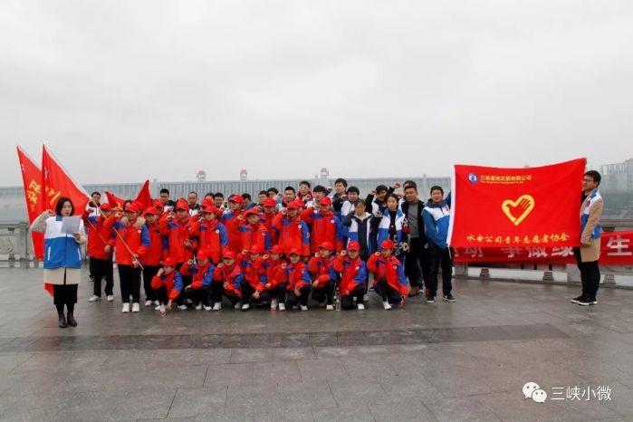 在截流紀念園內,志愿者與孩子們在三峽大壩前莊嚴宣誓:清潔江河水,保護母親河,爭做綠色文明帶頭人,勇做愛江護河小衛士,讓綠色永存,讓家園更美。