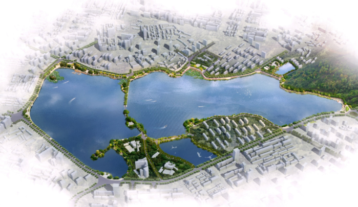 南門湖、甘棠湖臨近長江,是九江市中心城區極為重要的水體,猶如潯城“雙眸”,承載千年文脈。兩湖綜合治理工程,著重解決沿線排口眾多,溢流頻發,污水廠進水濃度偏低、水體藍藻頻發等問題,規劃開展環湖排水系統工程、補水工程、清淤及水生態修復工程、調蓄池及雨水循環中心工程、岸線恢復及景觀提升工程。