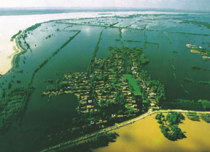 1998年長(zhǎng)江發(fā)生洪災(zāi)時(shí)被水淹沒的嘉魚縣鄉(xiāng)村簰洲灣