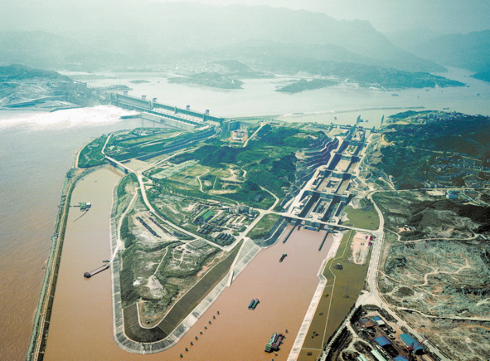 三峽大壩上下游之間水位的最大落差達113米,船舶從下游駛往上游(或從上游駛往下游),必須通過三峽船閘或垂直升船機。人們形象地比喻船舶通過三峽船閘過壩是“爬樓梯”,船舶乘垂直升船機過壩是“坐電梯”。