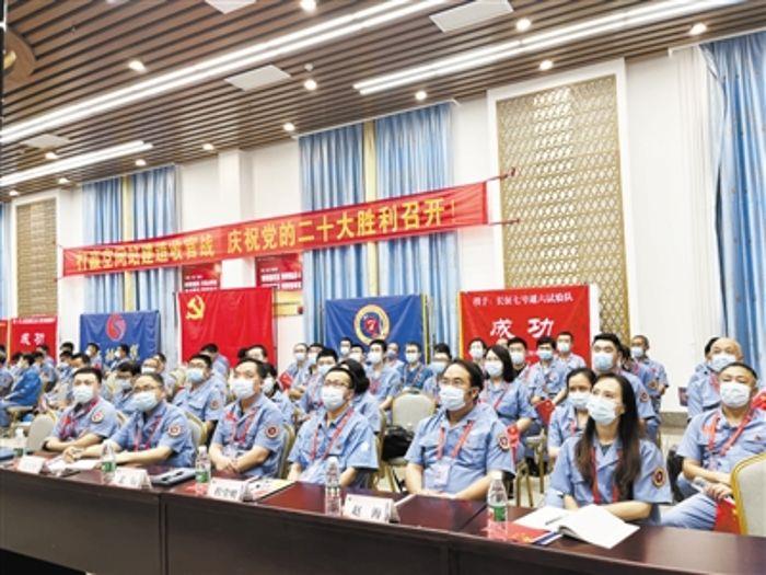 上午10時,航天科技集團一院長征五號B、長征七號、長征二號F三支火箭發(fā)射隊全體隊員各自集結,集體收看黨的二十大開幕盛況。