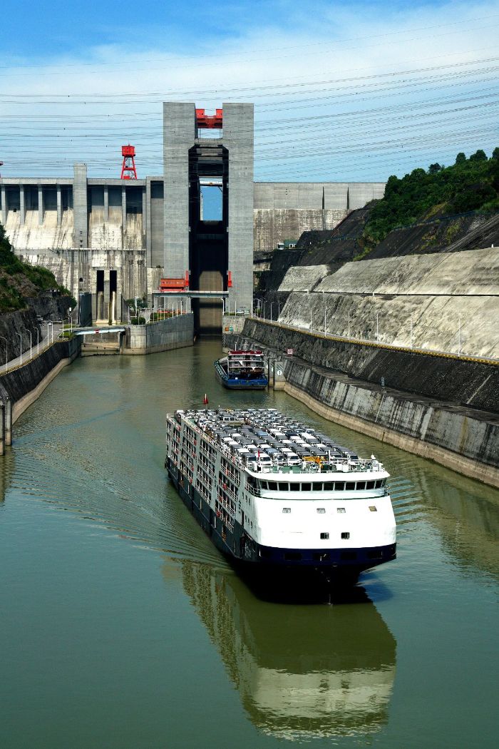 ▲船舶通過(guò)三峽升船機(jī)? 攝影:湯偉